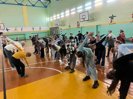 Ребята начали утро с зарядки, была проведена минутка безопасности, минутка здоровья, посещение кинотеатра Skyline и спортивные игры.с