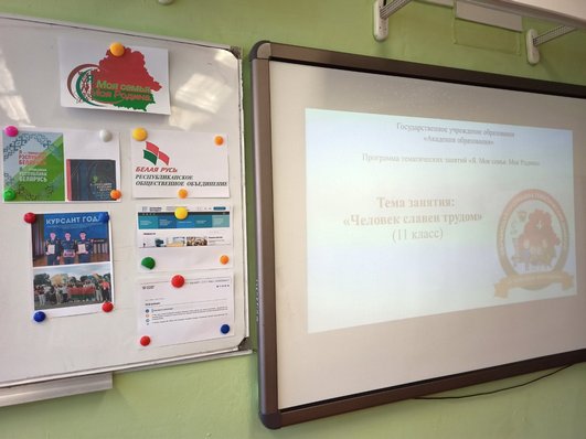 Для учащихся 11 класса ГУО «Средняя школа №7 г. Речицы» состоялся урок по программе «Я. Моя семья. Моя Родина» на тему «Человек славен трудом». На занятии присутствовал первый секретарь Речицкого РК ОО «БРСМ» Дегтяренко Дмитрий Николаевич.