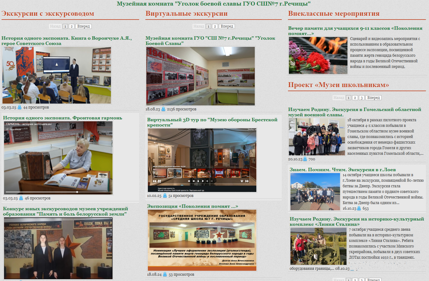 Учащимися школы под руководством учителя истории высшей категории Миронович Галины Евгеньевны проведена огромная исследовательская работа по увековечиванию подвига советского народа в Великой Отечественной войне. Читайте подробнее о деятельности музея в этой статье.