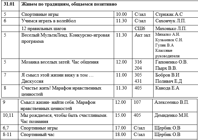 Отчет об уже проведенных мероприятиях в шестой школьный день можно посмотреть в меню сайта Деятельность/"Шестой школьный день"