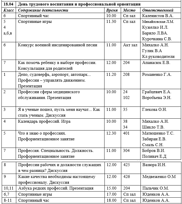 День ТРУДОВОГО воспитания и ПРОФЕССИОНАЛЬНОЙ ориентации