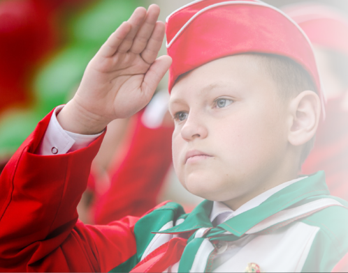 Салют пионерский - особое пионерское приветствие. Салютуя, пионер поднимает над головой правую руку с плотно сжатыми пальцами.Слоган организации - «БРПО – территория детства!»
