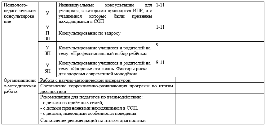 Индивидуальные консультации для учащихся, с которыми проводится ИПР, признаных находящимися в СОП |
