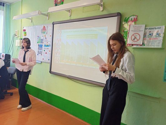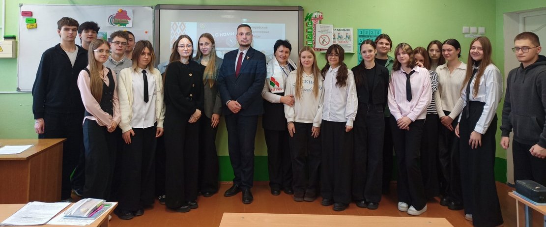 Для учащихся 11 класса ГУО «Средняя школа №7 г. Речицы» состоялся урок по программе «Я. Моя семья. Моя Родина» на тему «Человек славен трудом». На занятии присутствовал первый секретарь Речицкого РК ОО «БРСМ» Дегтяренко Дмитрий Николаевич.
