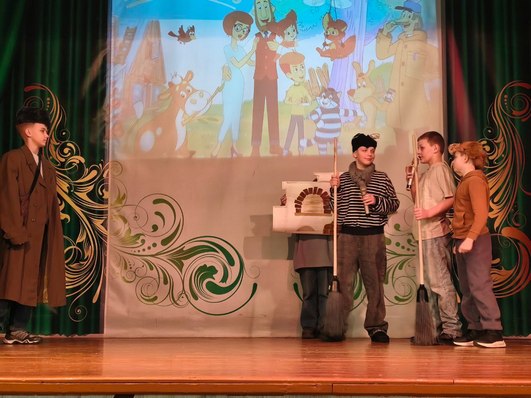 - 1 место занял коллектив 5А класса с инсценировкой «Простоквашино», которая тронула сердца зрителей добротой и дружбой персонажей.