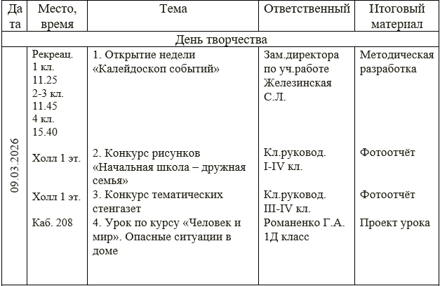 В первый день недели, 9 марта, у учащихся начальных классов прошли организационные линейки, где ребят познакомили с планом проведения Недели.
