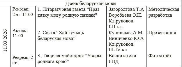 Дзень беларускай мовы ў нашай школе стаў не толькі магчымасцю пагрузіцца ў свет беларускай літаратуры і культуры, але і выдатным прыкладам таго, як важна і неабходна паўставаць за родную мову. Сумесныя намаганні вучняў, настаўнікаў зрабілі гэты дзень асаблівым і запамінальным. Мы спадзяемся, што кожны з нас возьме з сабой не толькі новыя веды, але і любоў да роднай мовы, якая будзе гучаць у нашых сэрцах і дамах на працягу ўсяго жыцця.