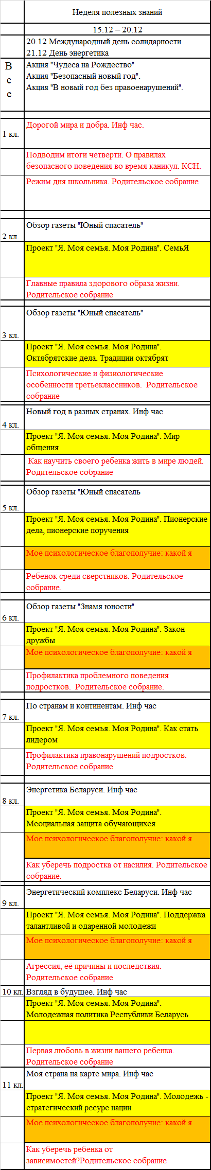 Календарь мероприятий на текущий день. Подробности - кликом по заголовкам