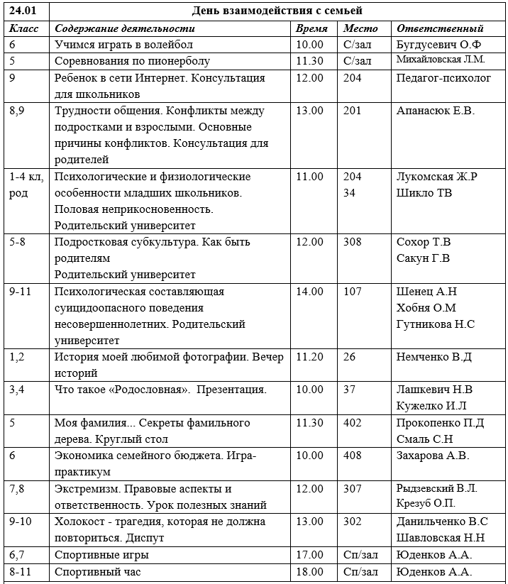 Отчет об уже проведенных мероприятиях в шестой школьный день можно посмотреть в меню сайта Деятельность/"Шестой школьный день"