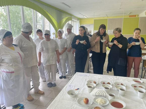 Родители могли оценить, на сколько качественно, вкусно и полезно готовят блюда для детей в школьной столовой. Были предложены следующие блюда комплексного обеда: борщ со сметаной, каша вязкая рисовая, наггетсы «Курочка», салат «Цыпленок», компот из плодов или ягод сушеных (изюма). Все блюда приготовлены по технологическим картам. Родители могли оценить их не только по внешнему виду, но и по вкусовым качествам. Всем очень понравились блюда и то, как они приготовлены.
