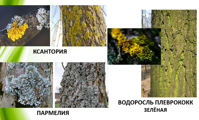 В ходе выполнения работы на территории нашего микрорайона были обнаружены следующие виды лишайников: