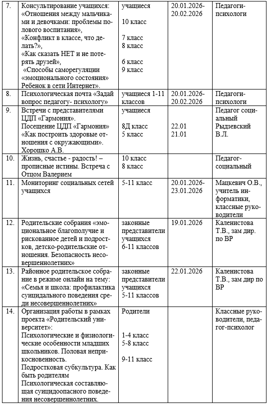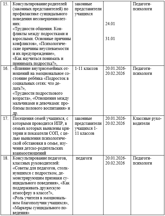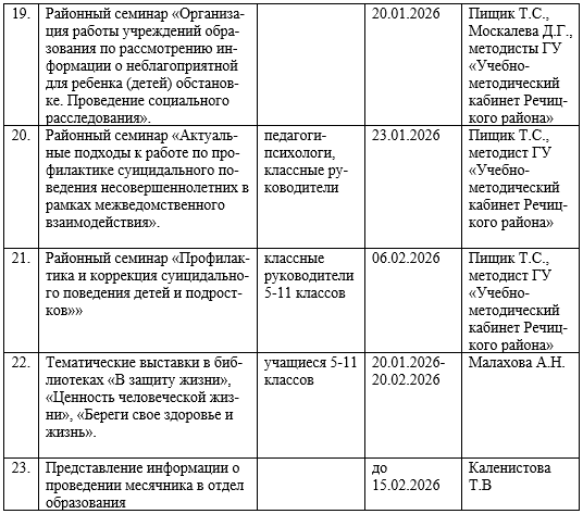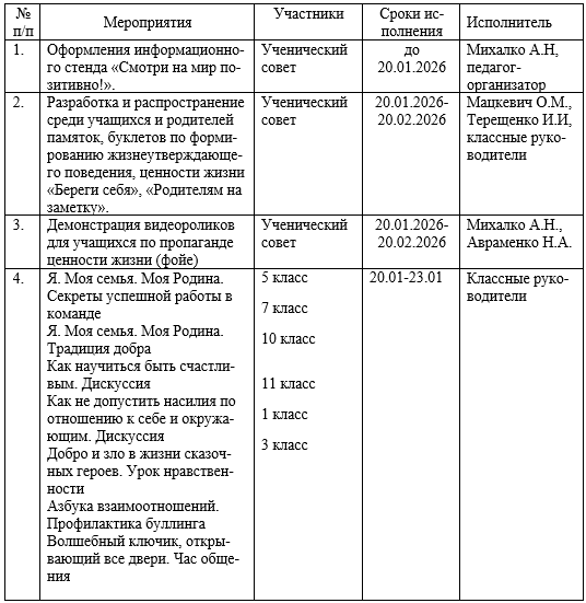 ПЛАН проведения месячника по профилактике суицидов «Смотри на мир позитивно!» 20.01.26-20.02.26